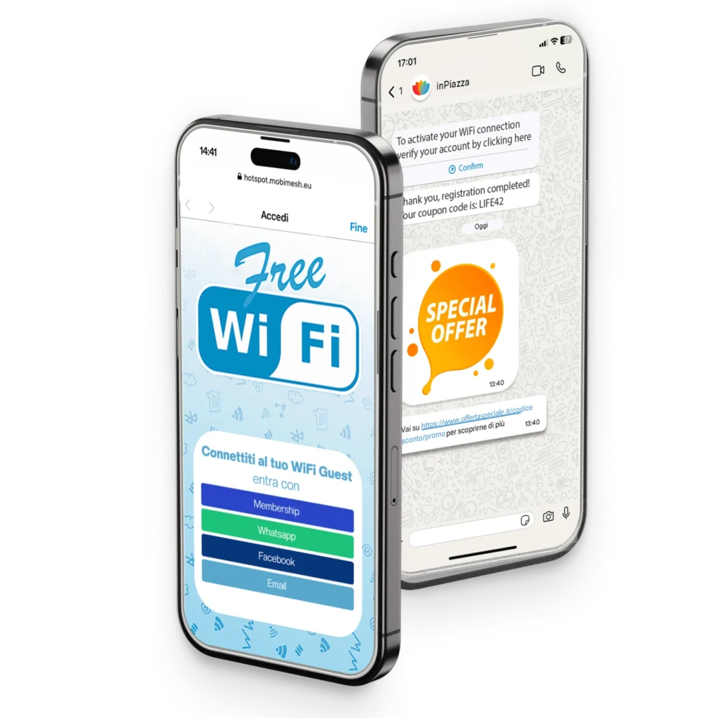 Con il proximity marketing, il WiFi non è solo un servizio di connettività: diventa uno strumento per attivare relazioni più dirette, pertinenti e misurabili. Con la soluzione WiFi Ospiti, potrai accompagnare il cliente lungo il percorso d’acquisto con messaggi, offerte e richieste di feedback contestuali