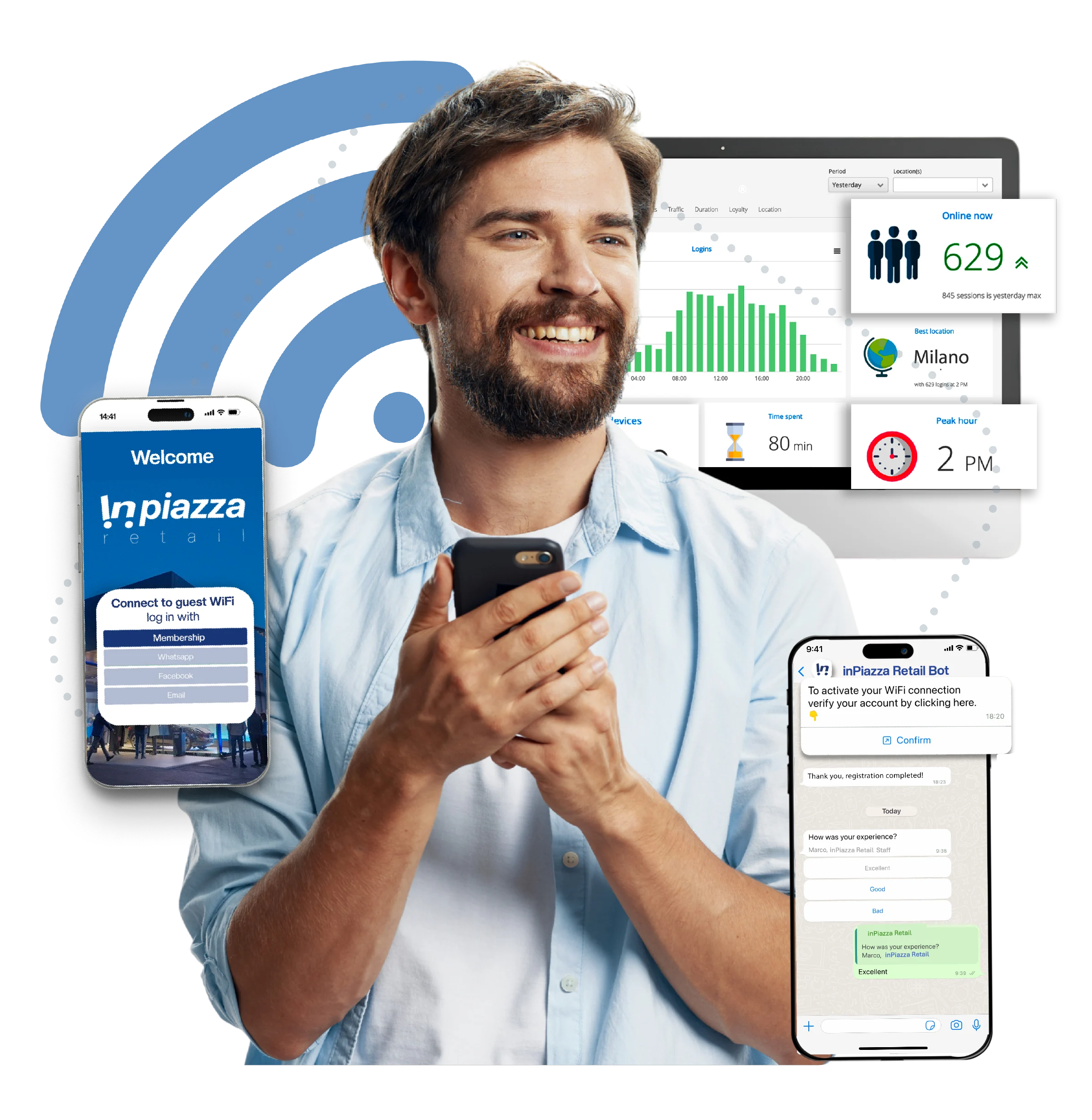 Trasforma il tuo WiFi in un touchpoint strategico per elevare l’esperienza del cliente nel negozio e coinvolgere gli utenti nel posto giusto e al momento giusto.